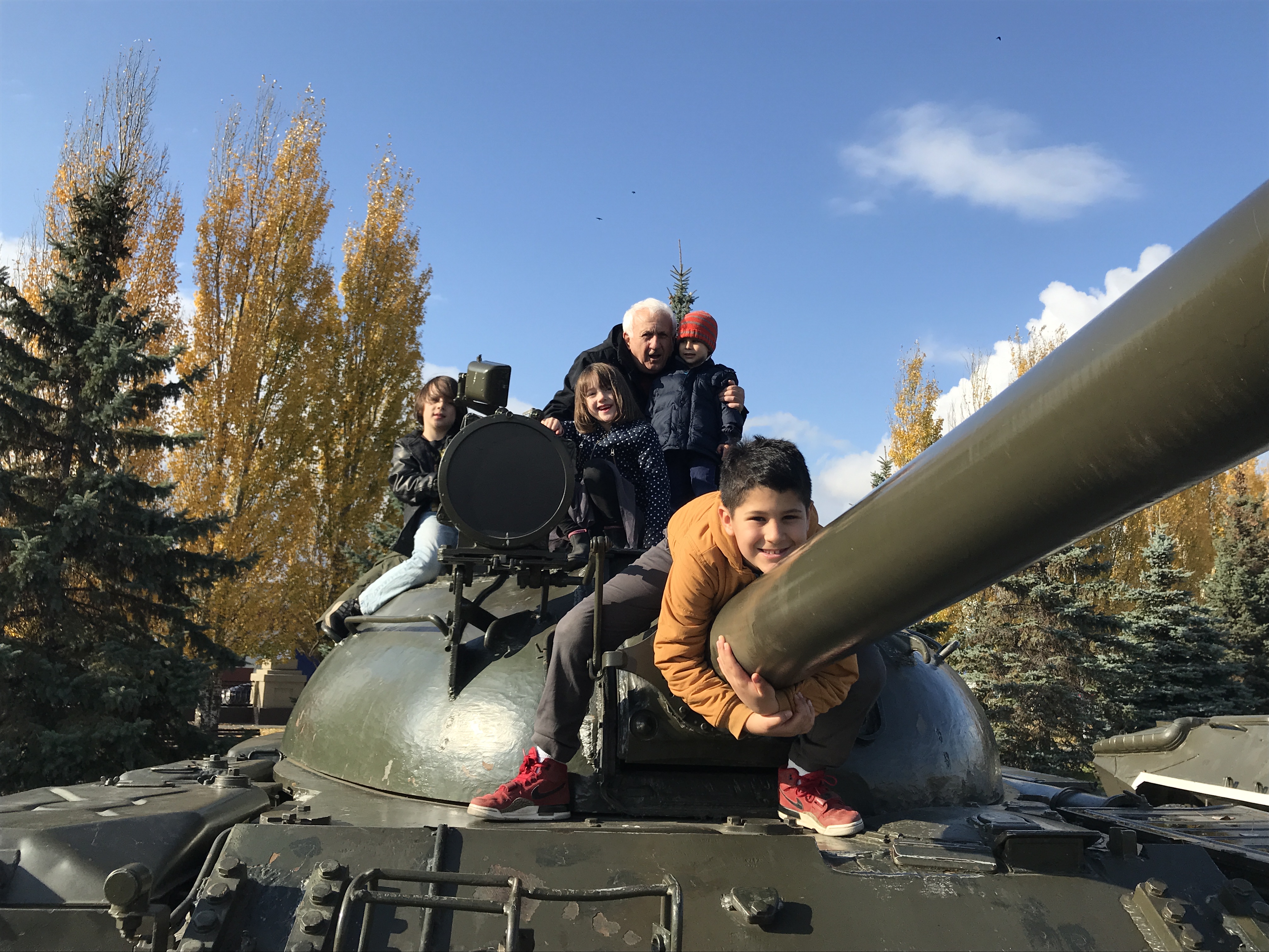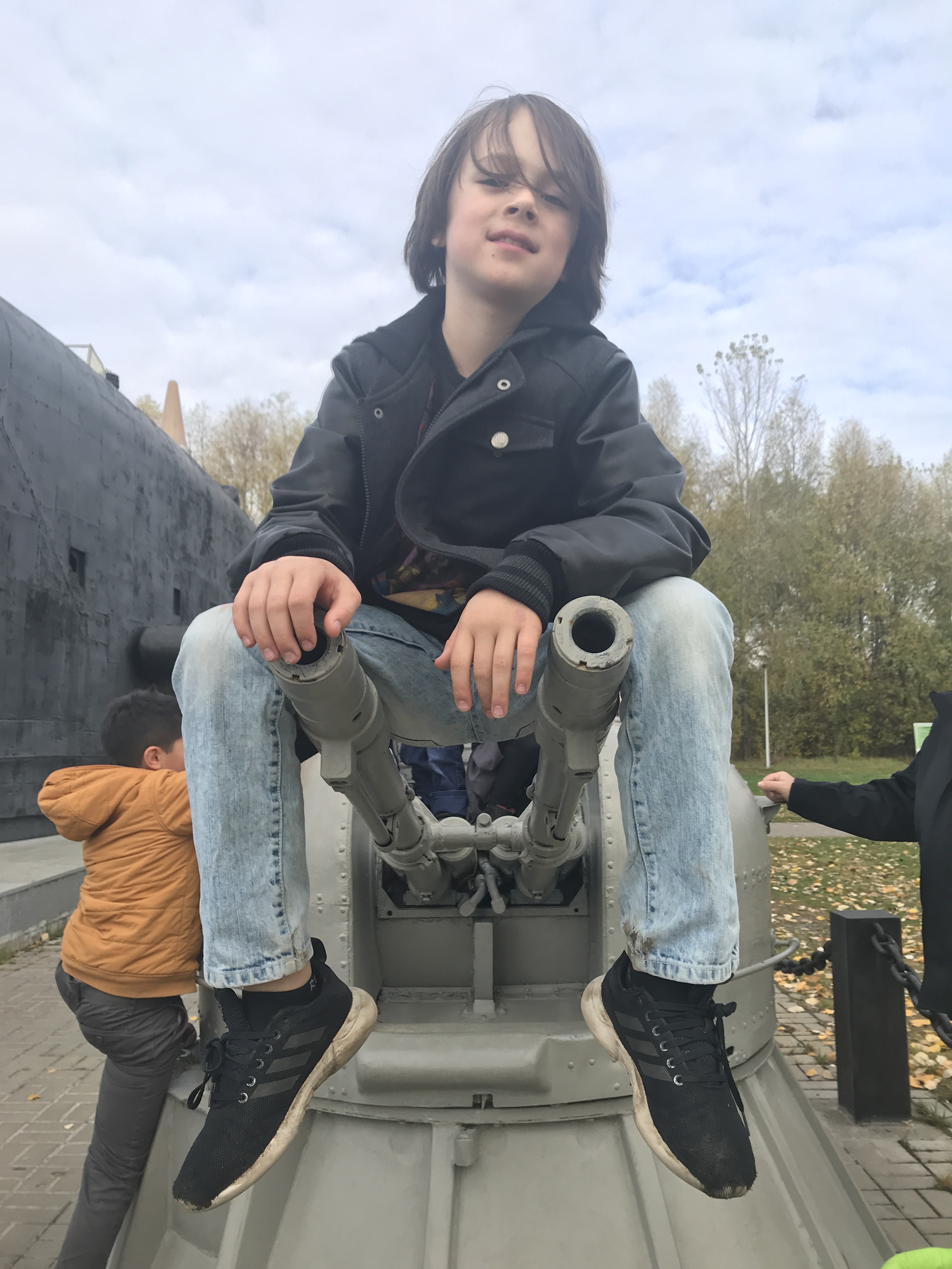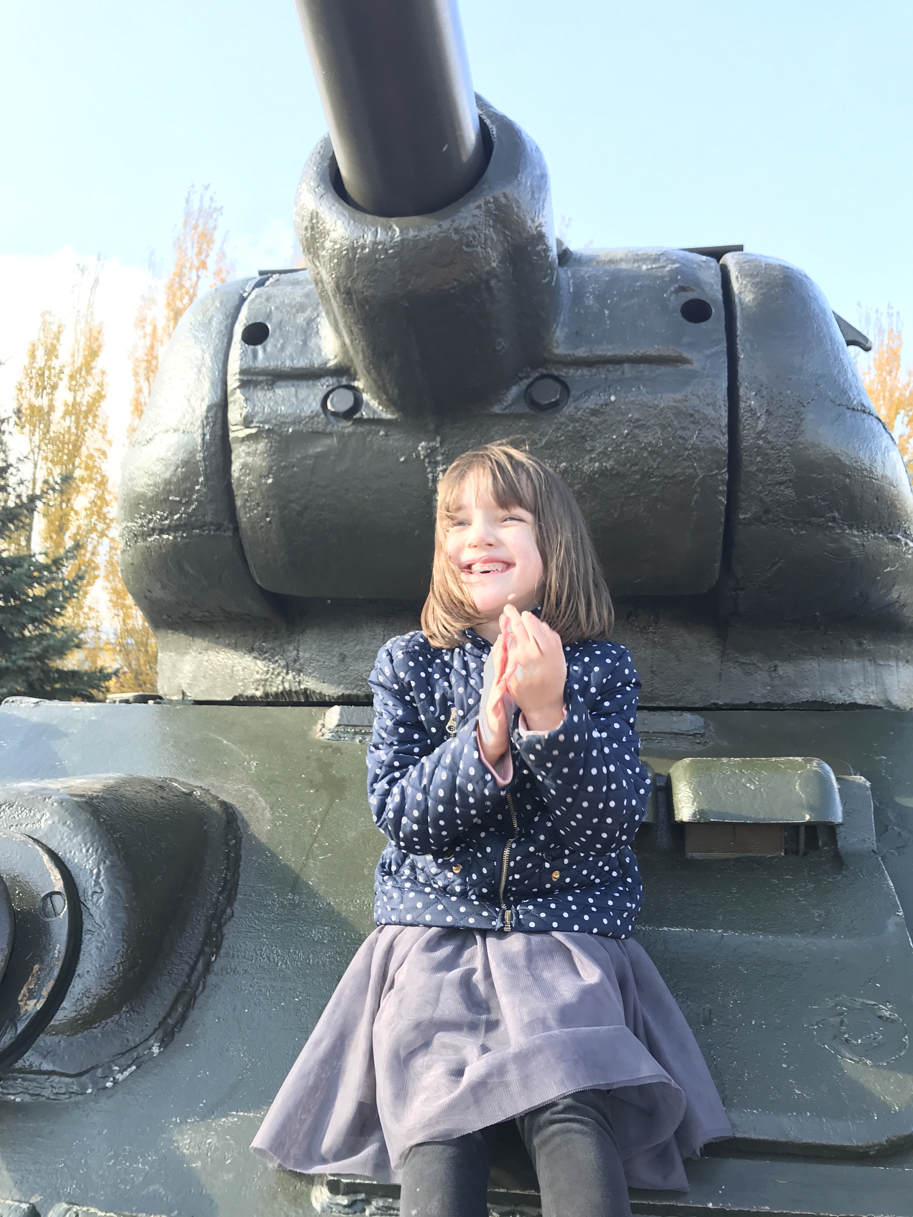 We visited Victory Park which contains old Russian tanks, planes, helicopters, and even a submarine as well as a small lake and play area. The kids enjoyed climbing on tanks and posing for photos. Seymour particularly enjoyed mounting the model of tank that he drove when he served in the Russian military in the 1960’s. Also note the juxtaposition in the middle photo of guys fishing and glamour photo shoot. This is quintessential Russia in one photo.