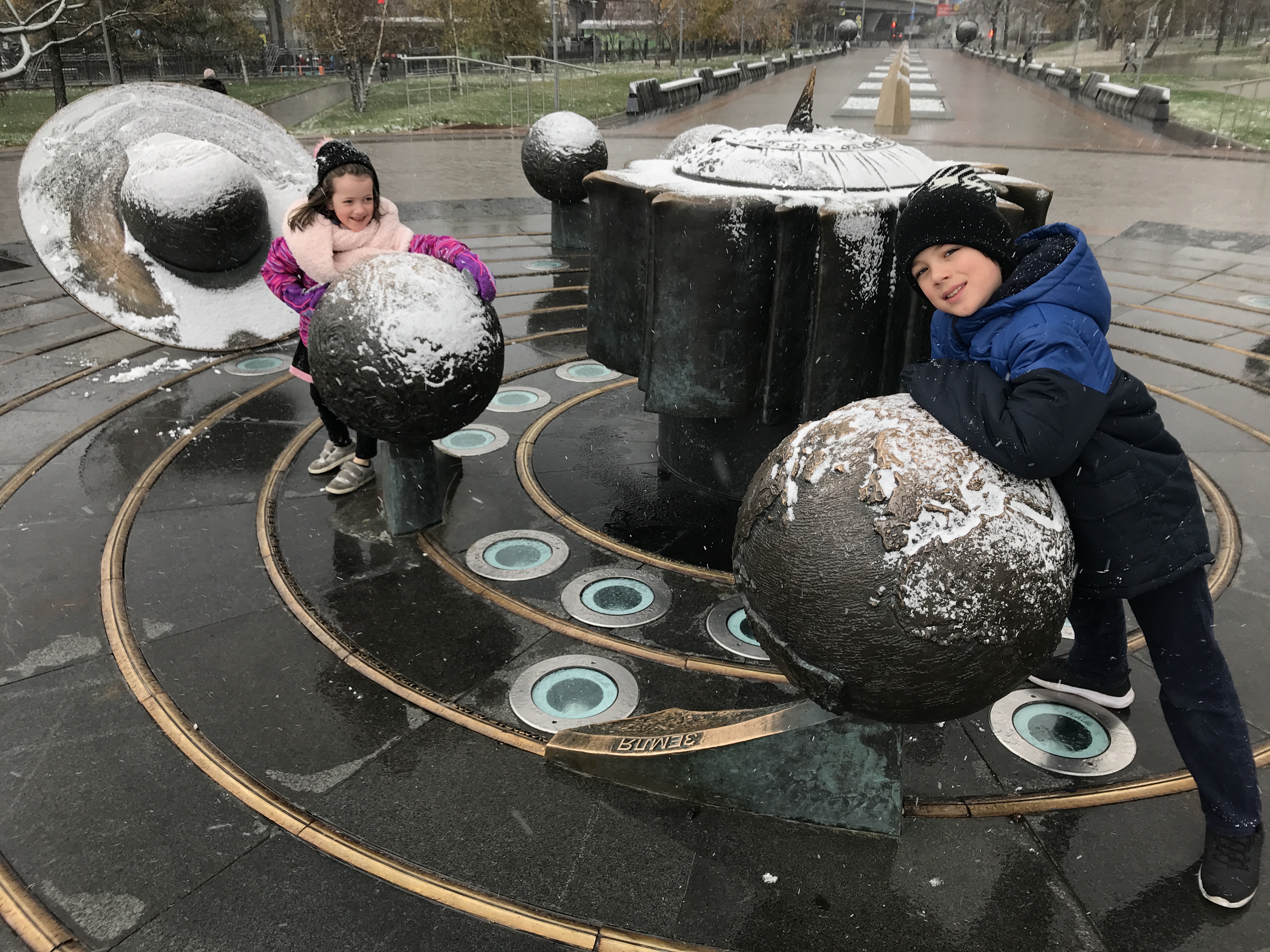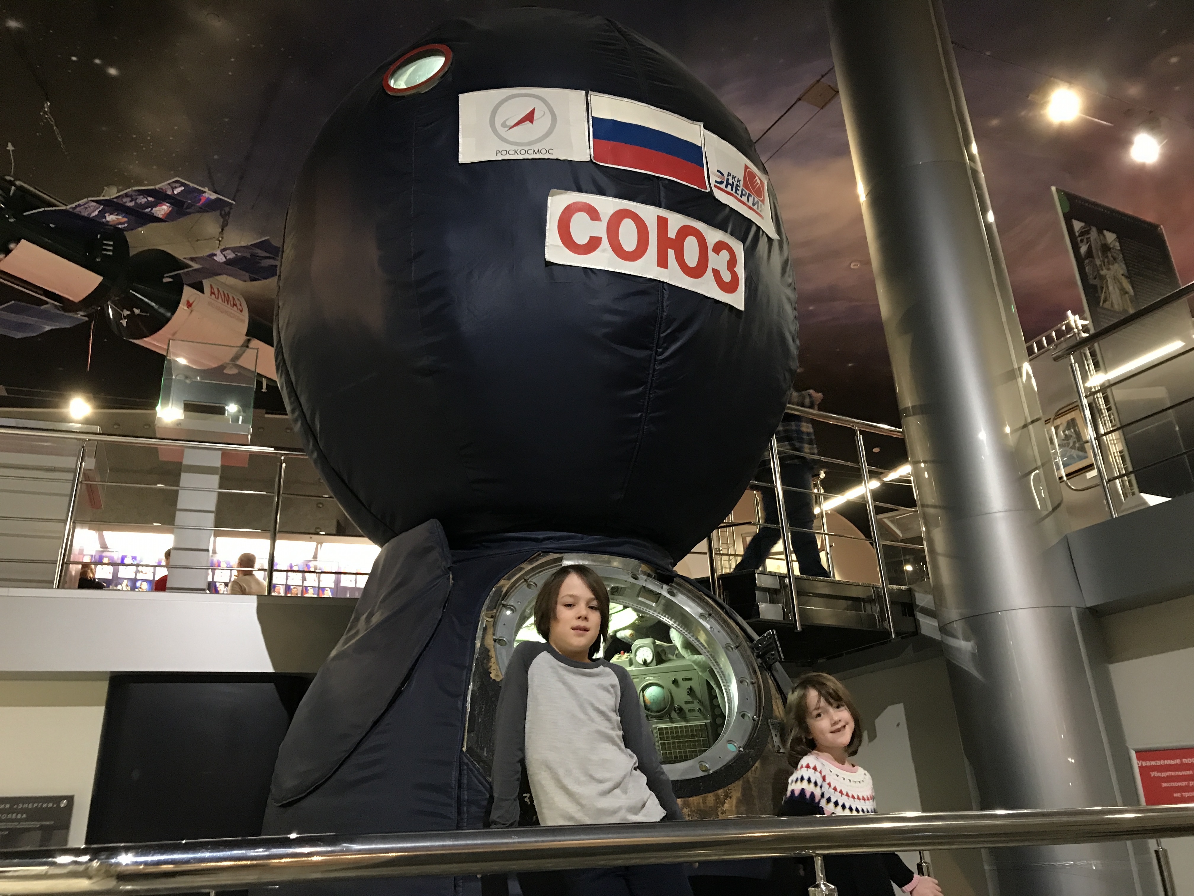 On the day of our flight to Sochi, we awoke to snowflakes outside our window. We braved the snow and wind to check out VDNKh park (exhibitions of achievements of national economy) which is a massive park that Stalin had built starting in 1935 and includes pavilions representing the achievements of the former Soviet Republics. We made an impromptu visit to the Museum of Cosmonautics to warm up and check out all the interesting space gear on display. Alden kept teasing me that I had “weak nerves” because I was so cold in the snow and wind. It’s going to be a long winter!