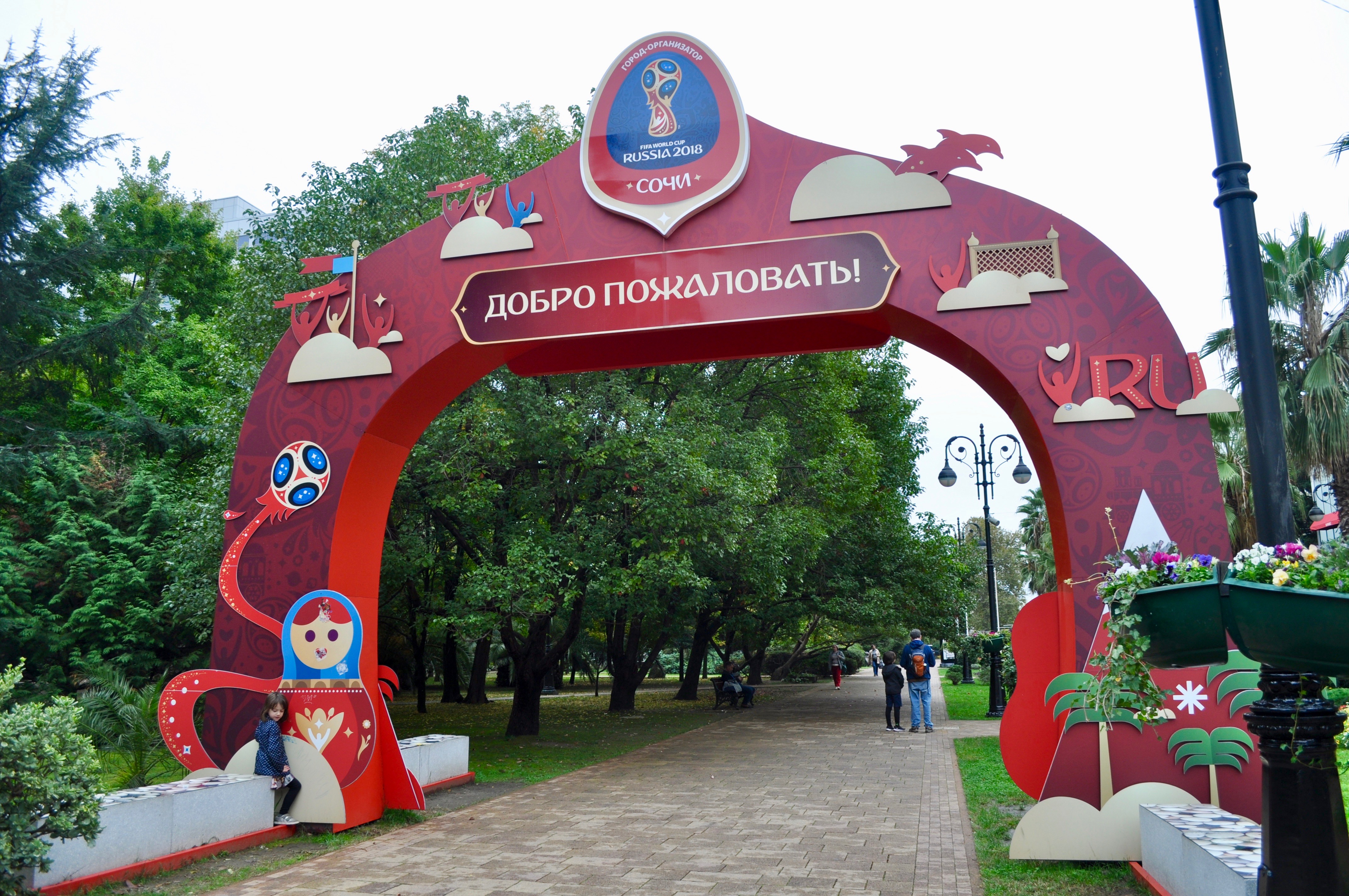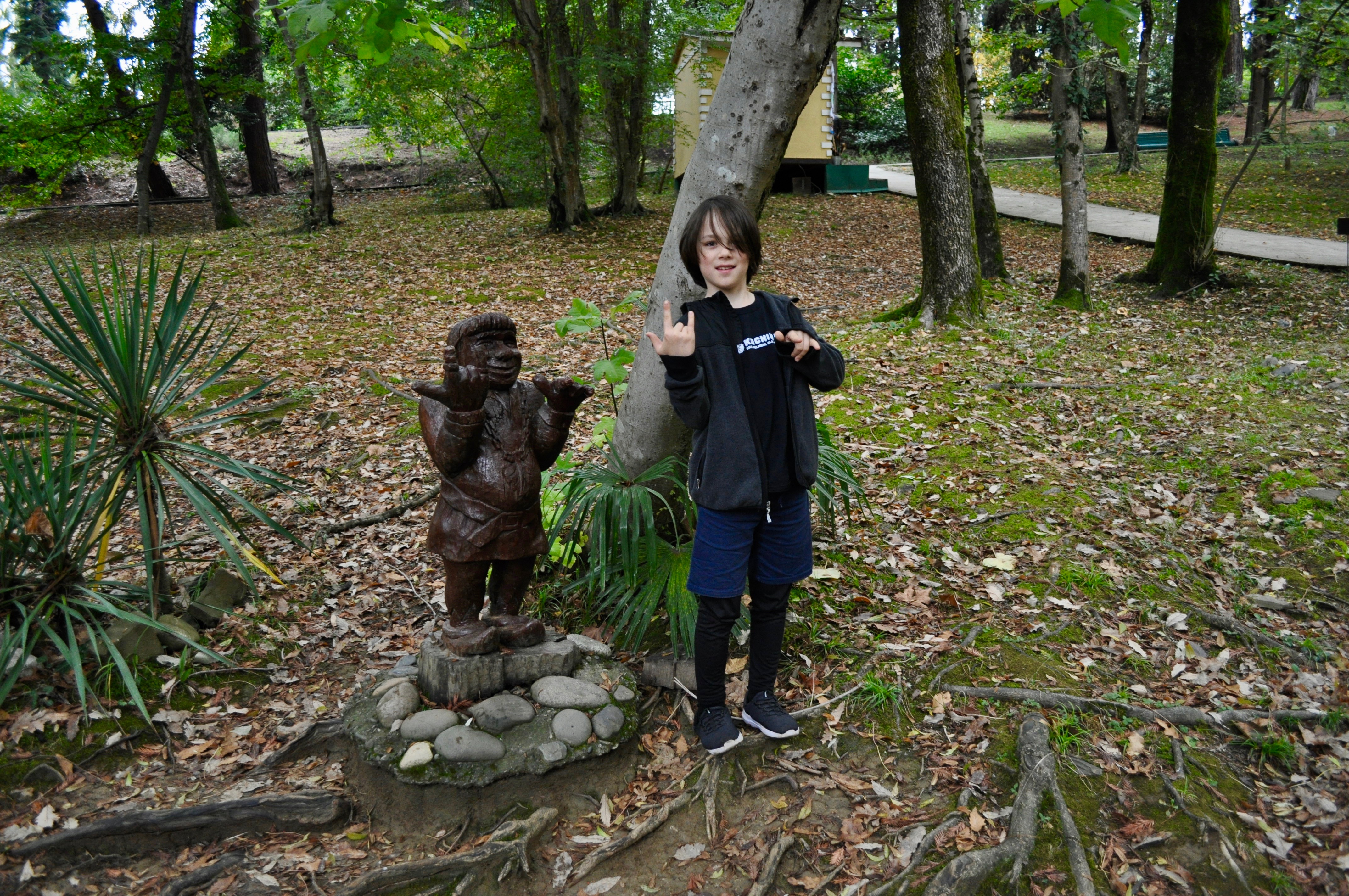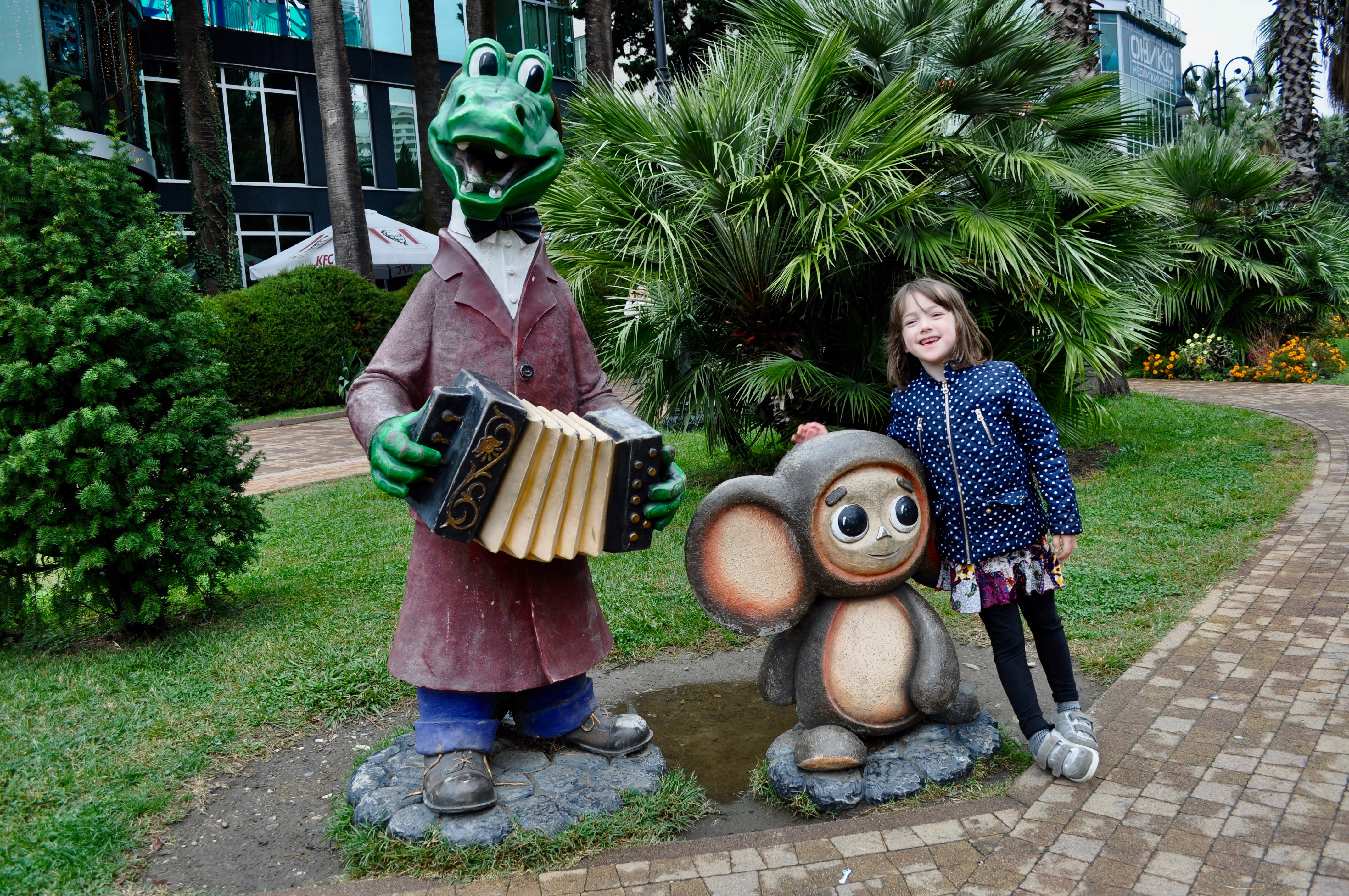 The Caucus Mountains were a place of myth and legend at the edge of the ancient world. To the ancient Greeks, they were considered the pillar that holds up the earth. Historically, the Caucuses have been home to dozens of different nationalities with their own unique languages and cultures separated by only a few miles and nearly impassable mountains. We found ourselves at the edge of this pillar in Sochi, where the mountains meet the sea, to conclude our fall break adventures. Our first day included a stroll near our rental through downtown Sochi where we found Mr. Smart’s eccentric uncle, a ride on a private yacht along the sea coast, which put Sarah’s safety monitor alter-ego to the test, and exploring Park Dendrariy, a beautiful botanical garden at the edge of the city. This park, like the area around Sochi, is a study in contrast with its multitude of plants varieties.