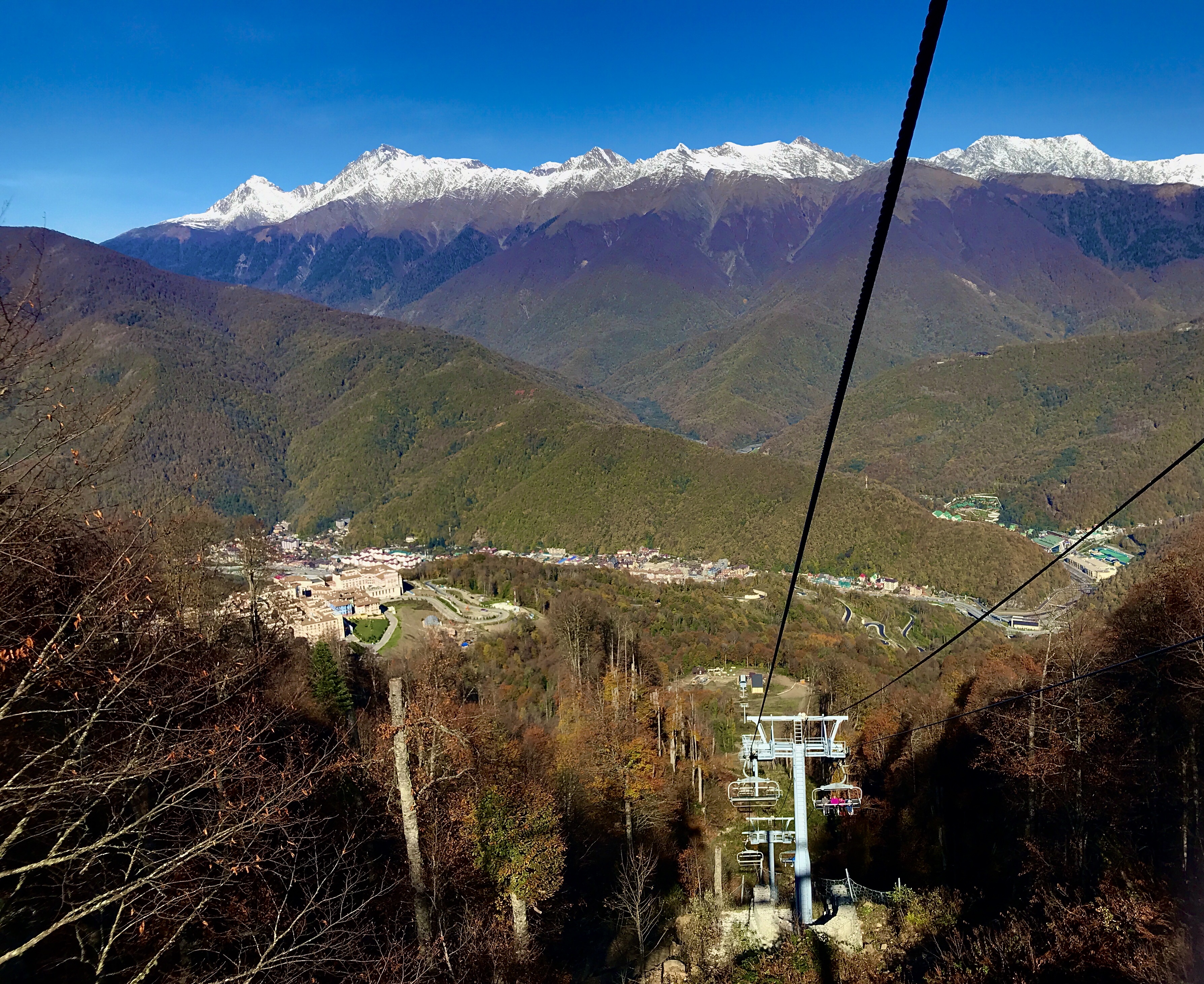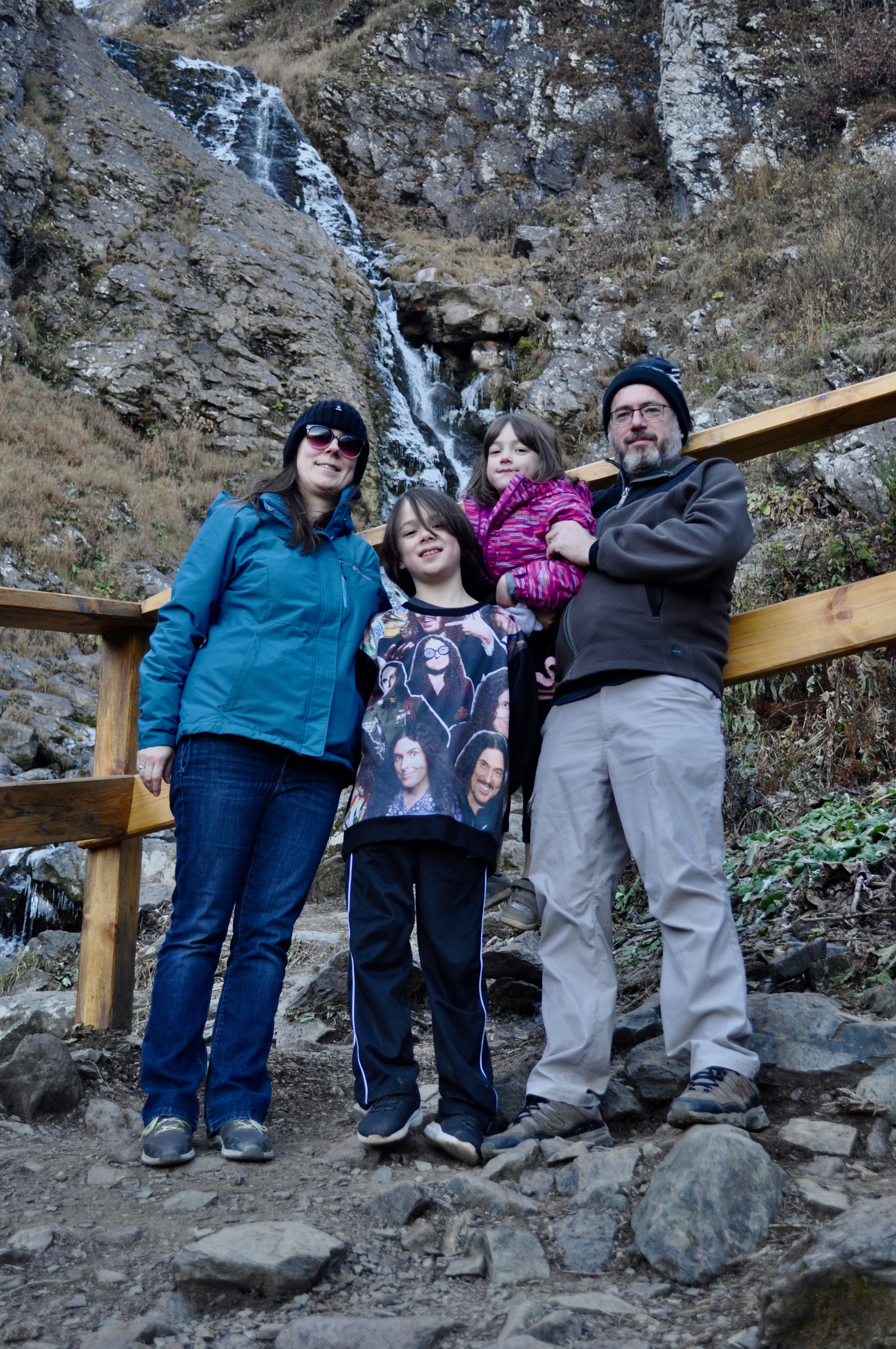 Here are some pictures of our gondola, chairlift x2, and a frosty hike up to a waterfall. You know you are in Russia when there are signposts on your hike directing you to the “meatsticks and mountain tea.”