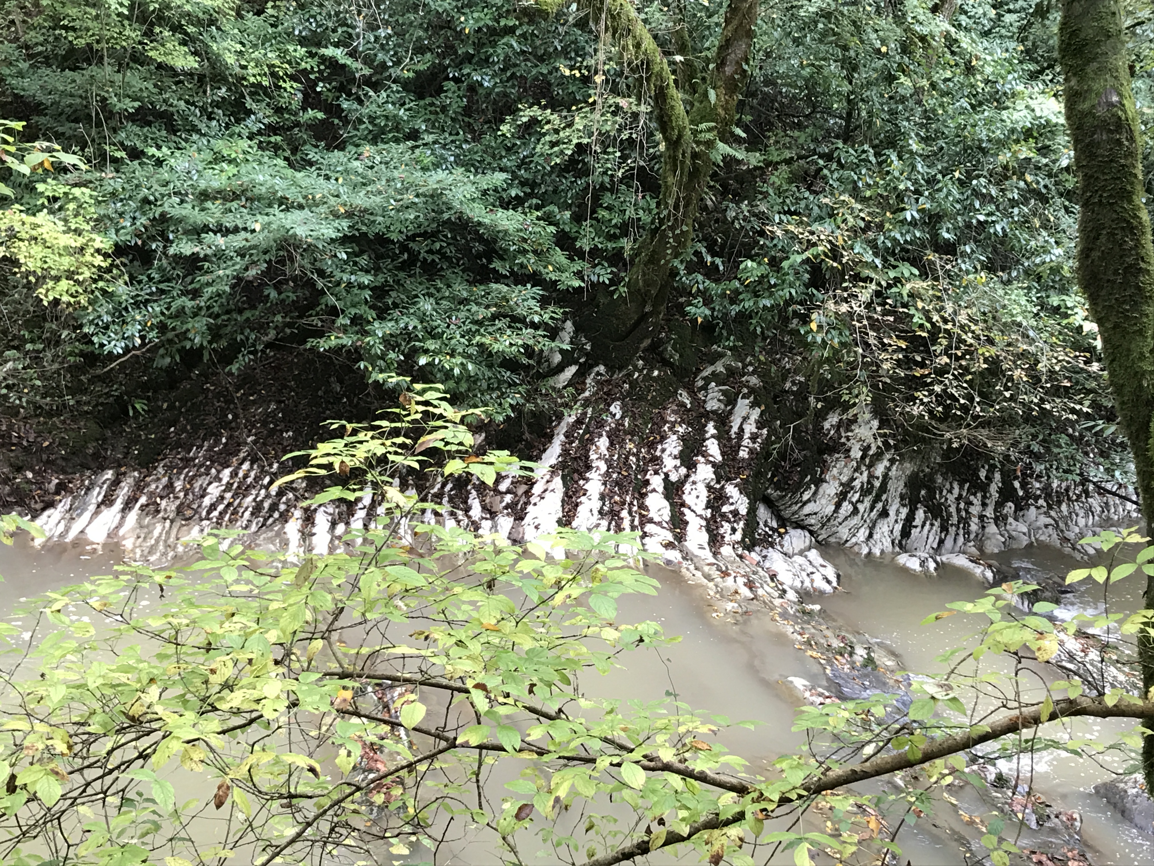 The next day, we set out to find a spot that loomed large in my family history. When I was four years old, I came to Sochi with my parents to enjoy what many Soviets regarded as the ultimate destination for rest and relaxation. Not much has survived in my personal memory from that trip except for a photo of my dad and I at a waterfall. Armed with the name of the waterfall and a digital copy of the picture, we set out to find the spot some 42 years later. The Agura waterfalls is actually a network of three waterfalls spread out over a 3 mile stretch on the Agurchik River. The name of the river does not refer to a little pickle as its name in Russian suggests but to Agura, who is a character in the legend of Prometheus. The legend is related to the Orliniye Skaly (Eagle’s Cliffs) on the outskirts of Sochi. It is believed that Zeus nailed Prometheus to the rocks here to punish him for granting fire to humans. A local girl named Agura tried to ease his suffering by secretly providing him with water. She did this until she herself was turned into a river at the foot of the rock. We started our adventure in a taxi that struggled to make it up the mountain road leading to the Eagle Cliffs. We finally got out and walked up the road when the taxi backing up and trying to go faster still resulted in spinning tires and burning rubber. As we walked up the road, we saw a burned out car frame. If this was a Greek myth, it would not be a good omen. We started the main portion of the hike near the statue of Prometheus that looks out over the valley below. After about three hours of intense hiking down the muddy cliff (it had rained the previous couple days) and perilous drop offs we found the falls and the very same rock to reprise the photo. We finished the hike at the other end and found a taxi willing to take our muddy selves to our next destination (once the kids removed their shoes at the behest of the cab driver).