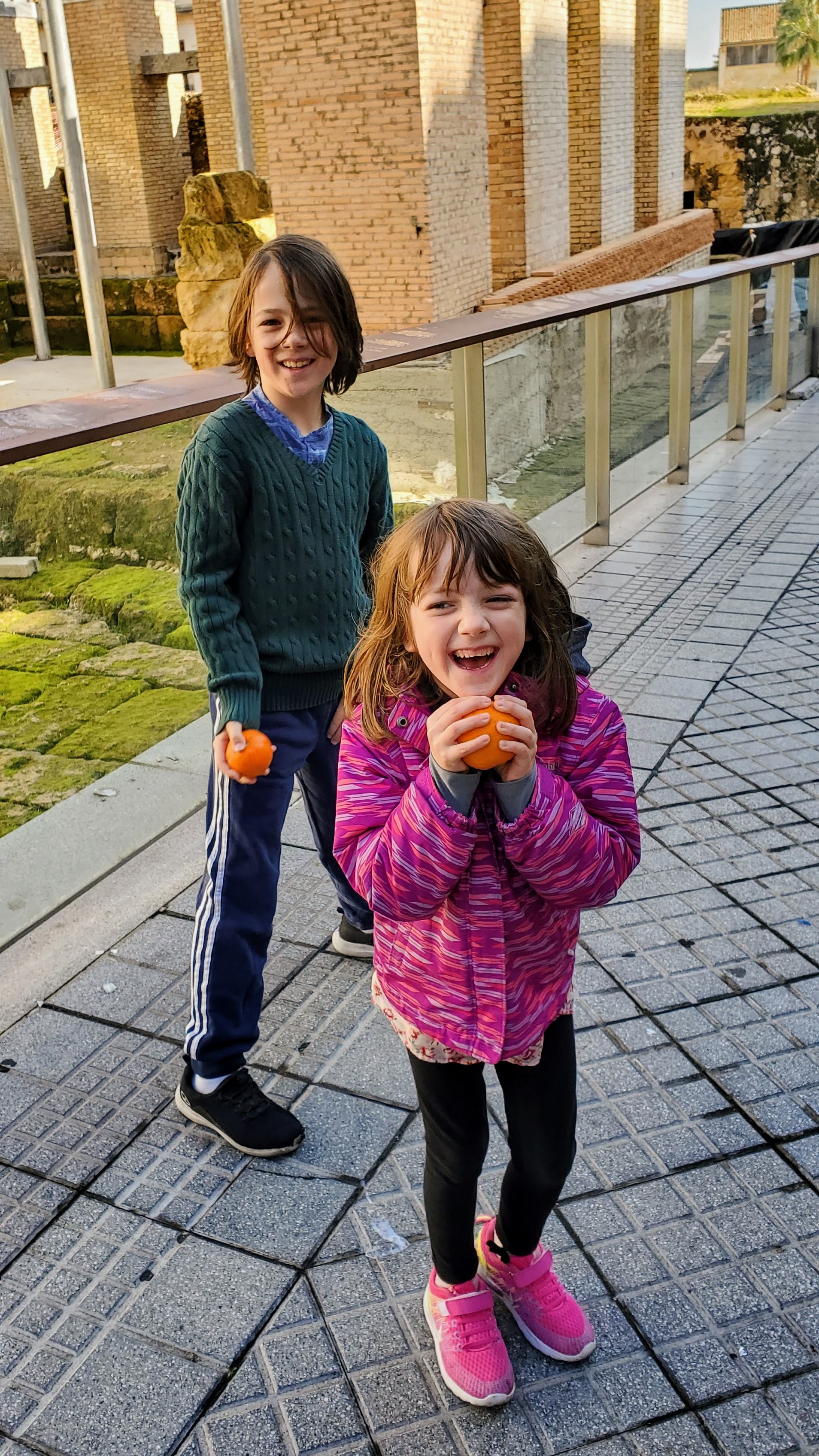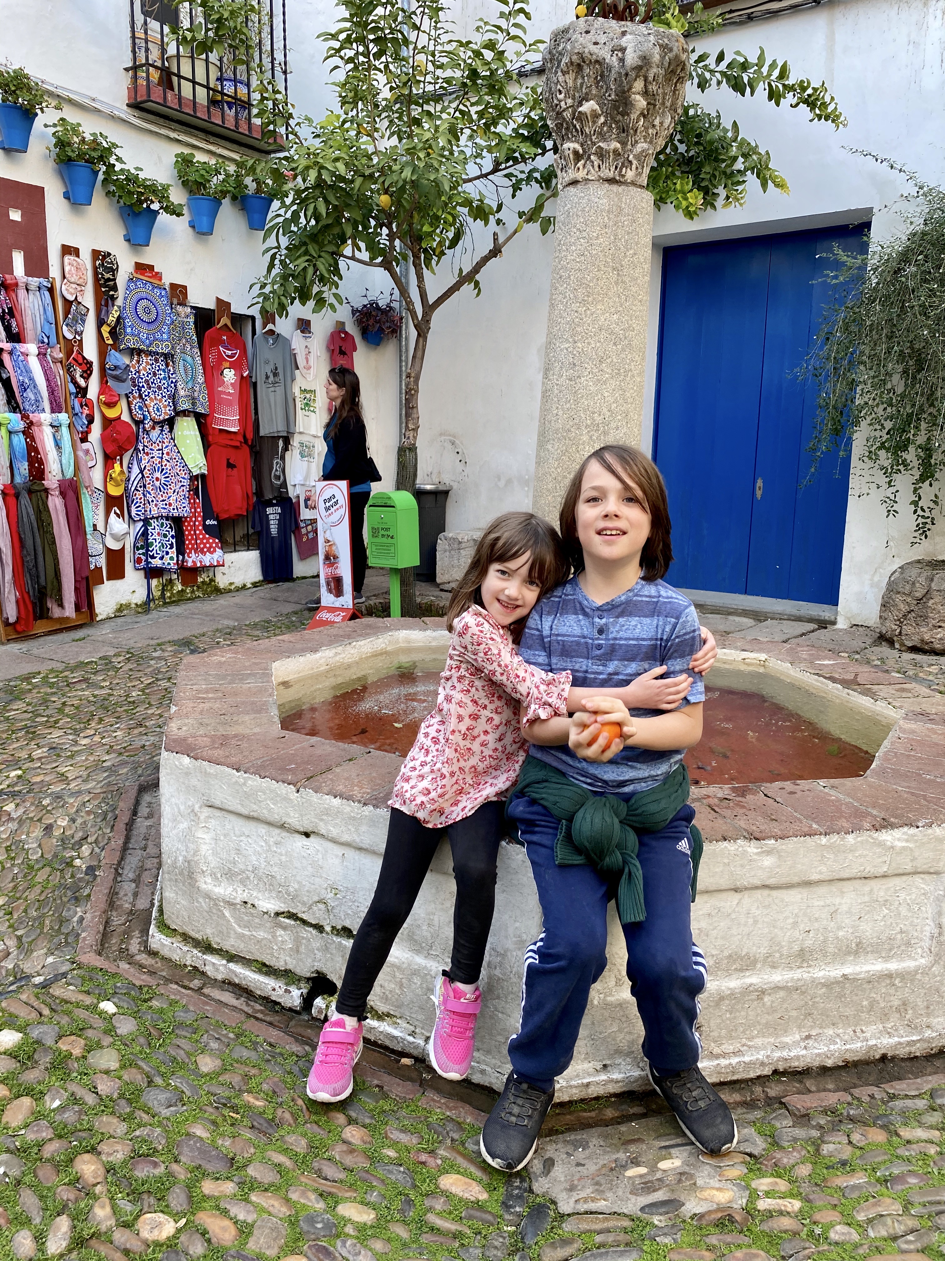 Kid highlights: orange bowling in Cordoba, carnival rides in Cordoba, and ice cream. I believe they had enjoyed ice cream eleven times up to this point on the trip- we counted. What, you might wonder, is orange bowling? Well, while checking out some not-so-impressive Roman ruins in Cordoba, we stumbled upon some street cleaners with the, to us, unfamiliar job of shaking the oranges from the trees and then sweeping up the fallen fruit. After watching oranges roll down the sloped street, Alden was inspired. He collected oranges everywhere he could stash them, loading his pockets and the knotted sleeves of his sweatshirt. Then we were off, searching for a deserted alley with just the right slope. It is hard to capture the glory of orange bowling with still photography, but we do have a video tutorial (available by request) of Alden explaining and demonstrating the proper technique.