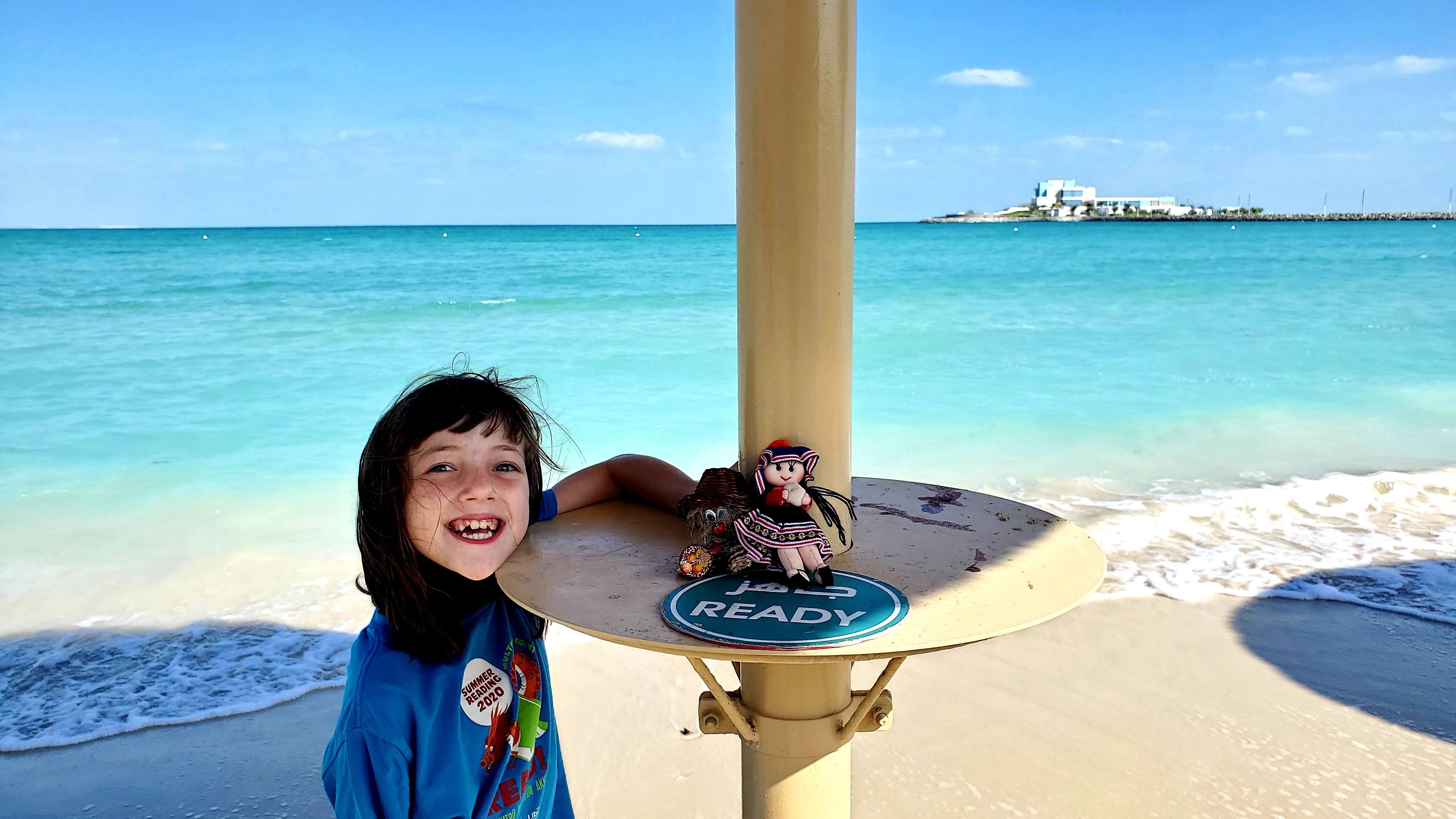 COVID safety- Close to 100% of the UAE has at least one dose of a vaccine. Abu Dhabi in particular is strict, having a “green pass” system that makes it particularly challenging to do much of anything if you are not vaccinated. This was a challenge when we first moved here, because it took some time to get our Russian vaccines recognized. But now we appreciate that we live in a community with high vaccination rates, and abundantly cheap and available covid testing. The sign outside the testing center has writing in English and Arabic that reads “Don’t You Worry!” and look how much fun this lady is having getting her test.