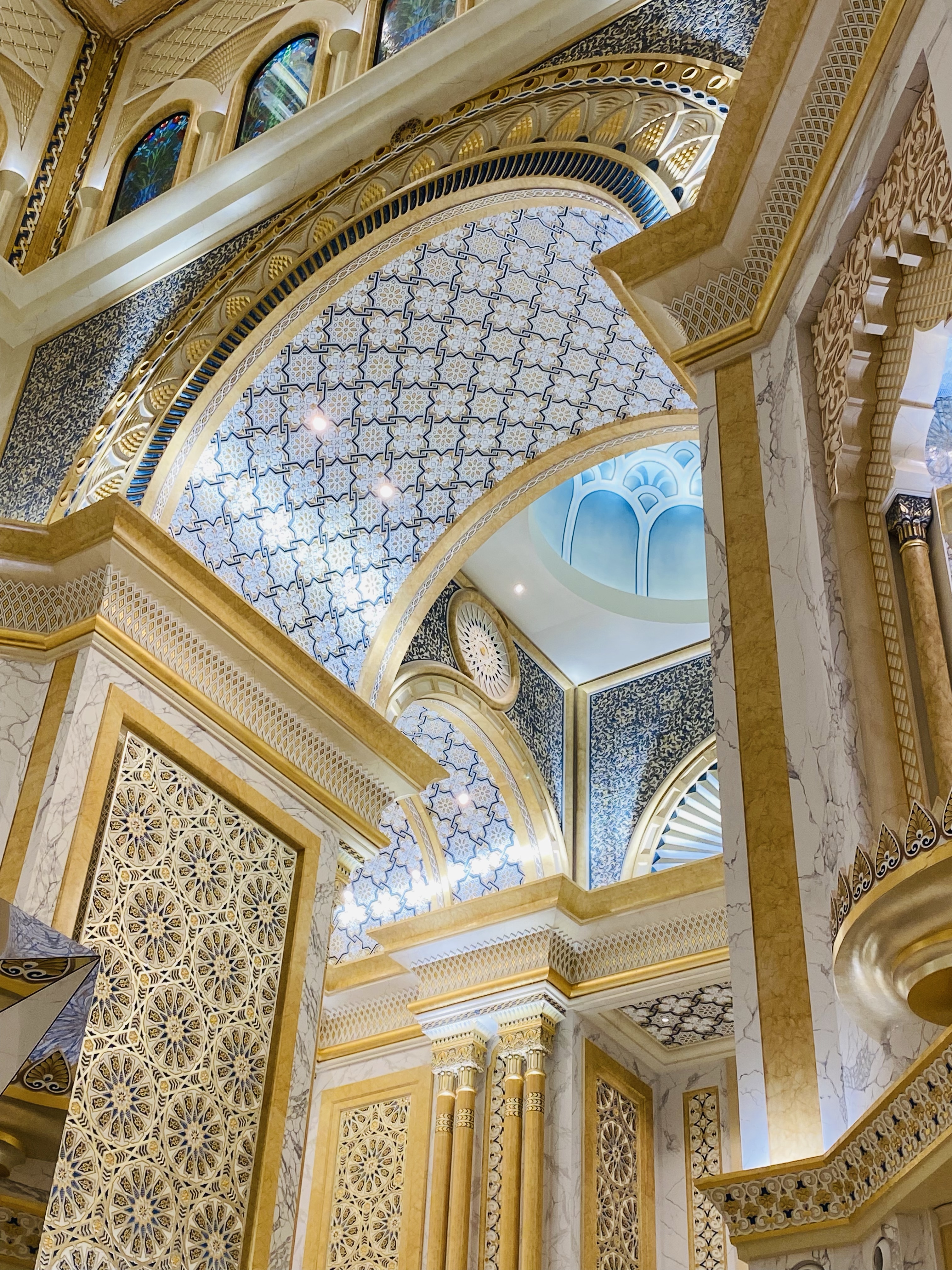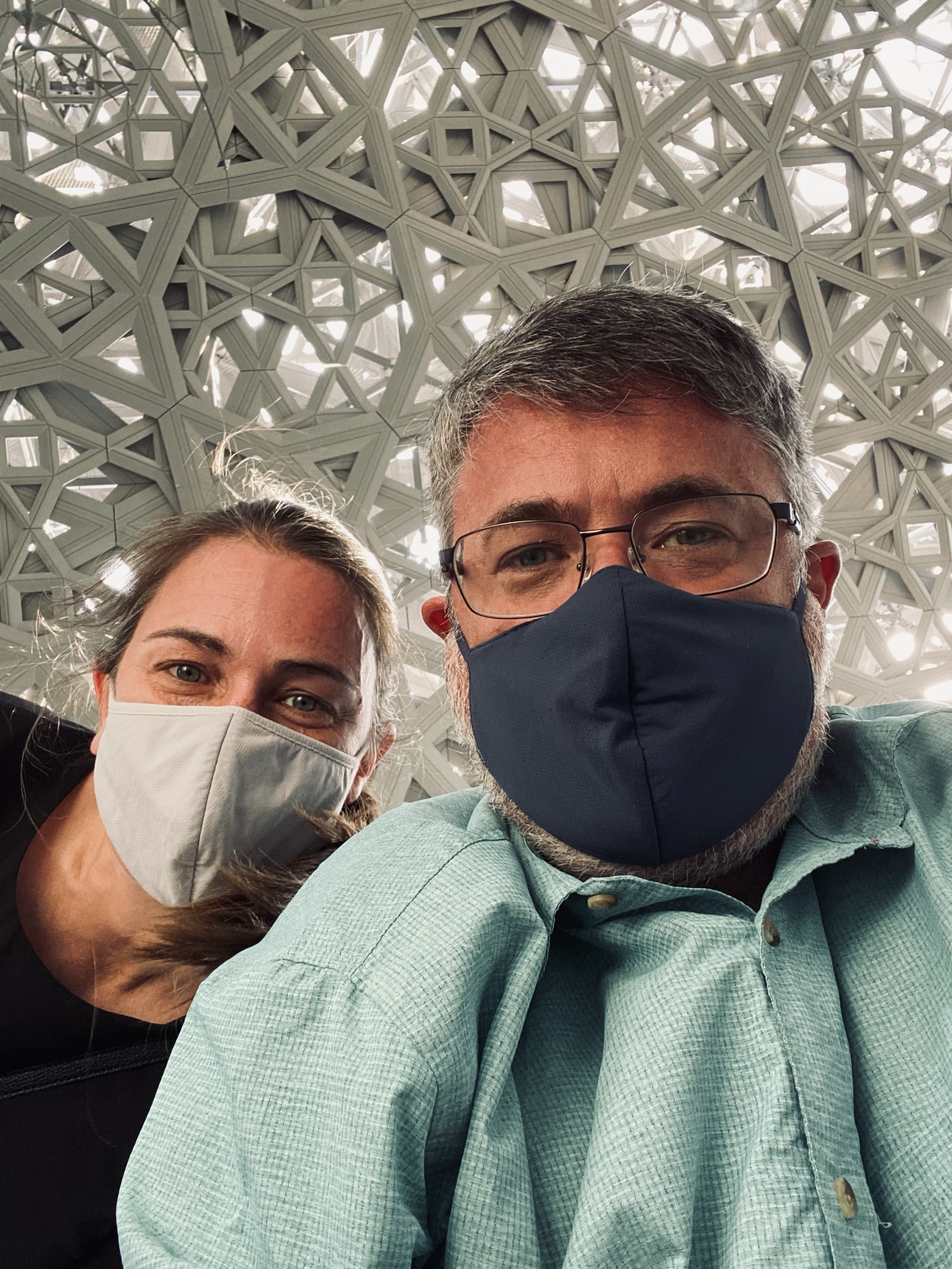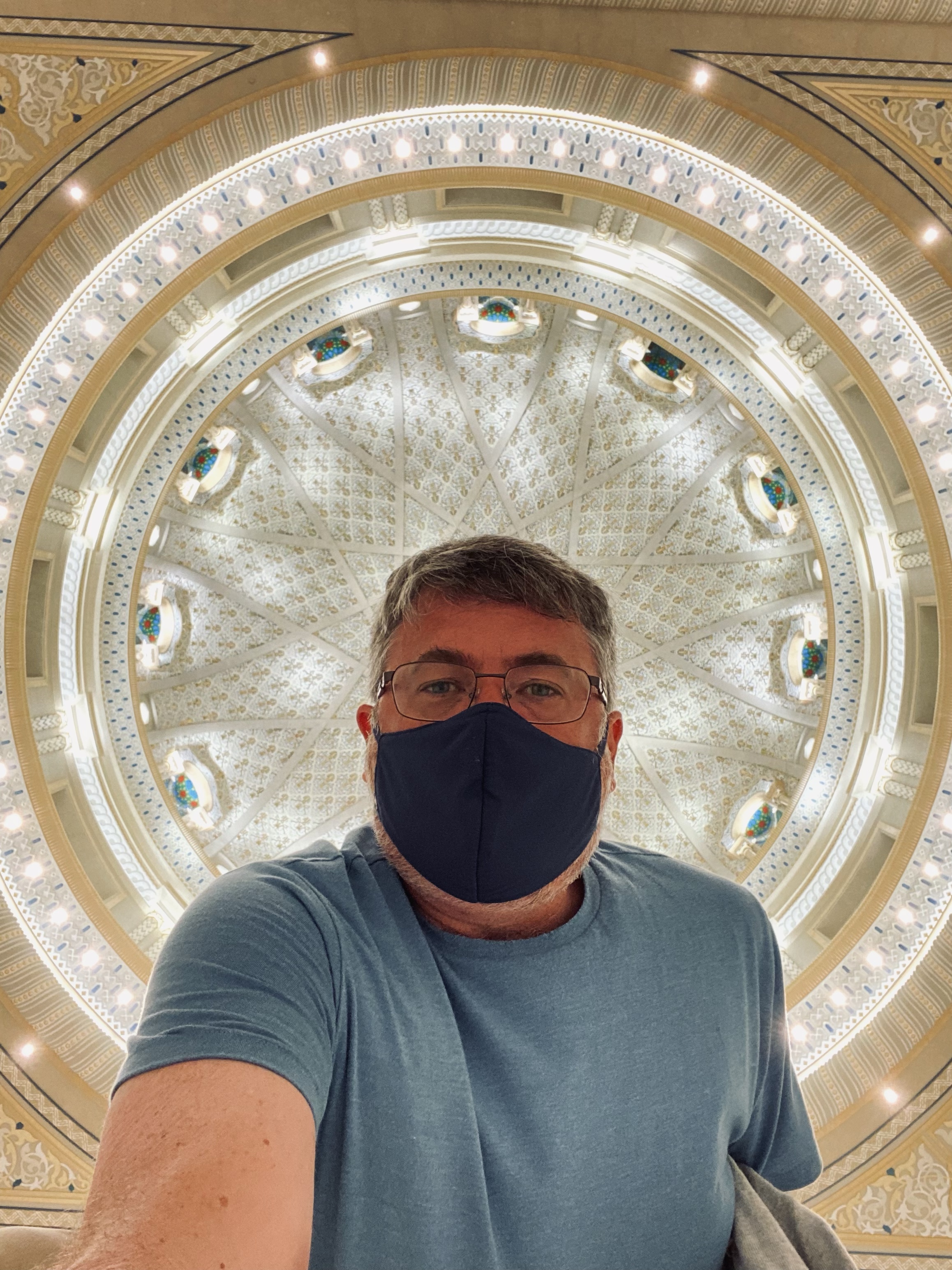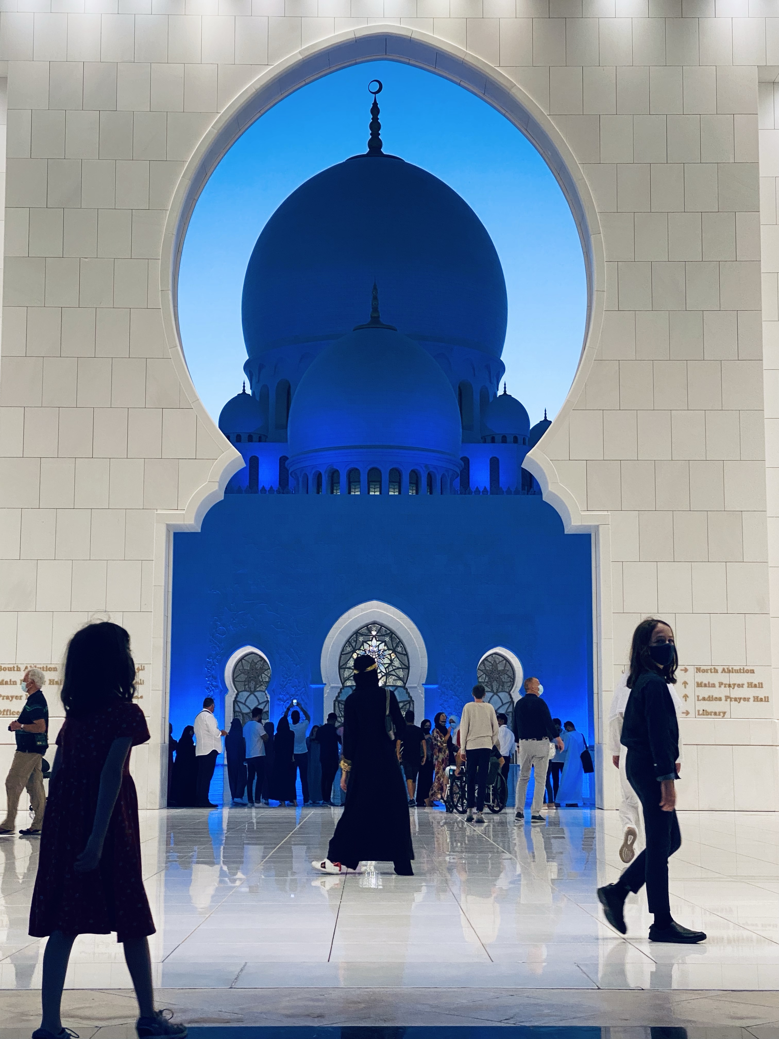 Cultural experiences- We have had the opportunity to explore some of the interesting cultural attractions in Abu Dhabi. Below are some photos of a visit we took our first week to the Presidential Palace (Qasr Al Watan) with other new colleagues. The palace is used for official business by the leaders of the UAE but also opened to the public in 2019. After perusing the displays inside the palace, we watched an impressive light show projected upon and integrating the building itself.