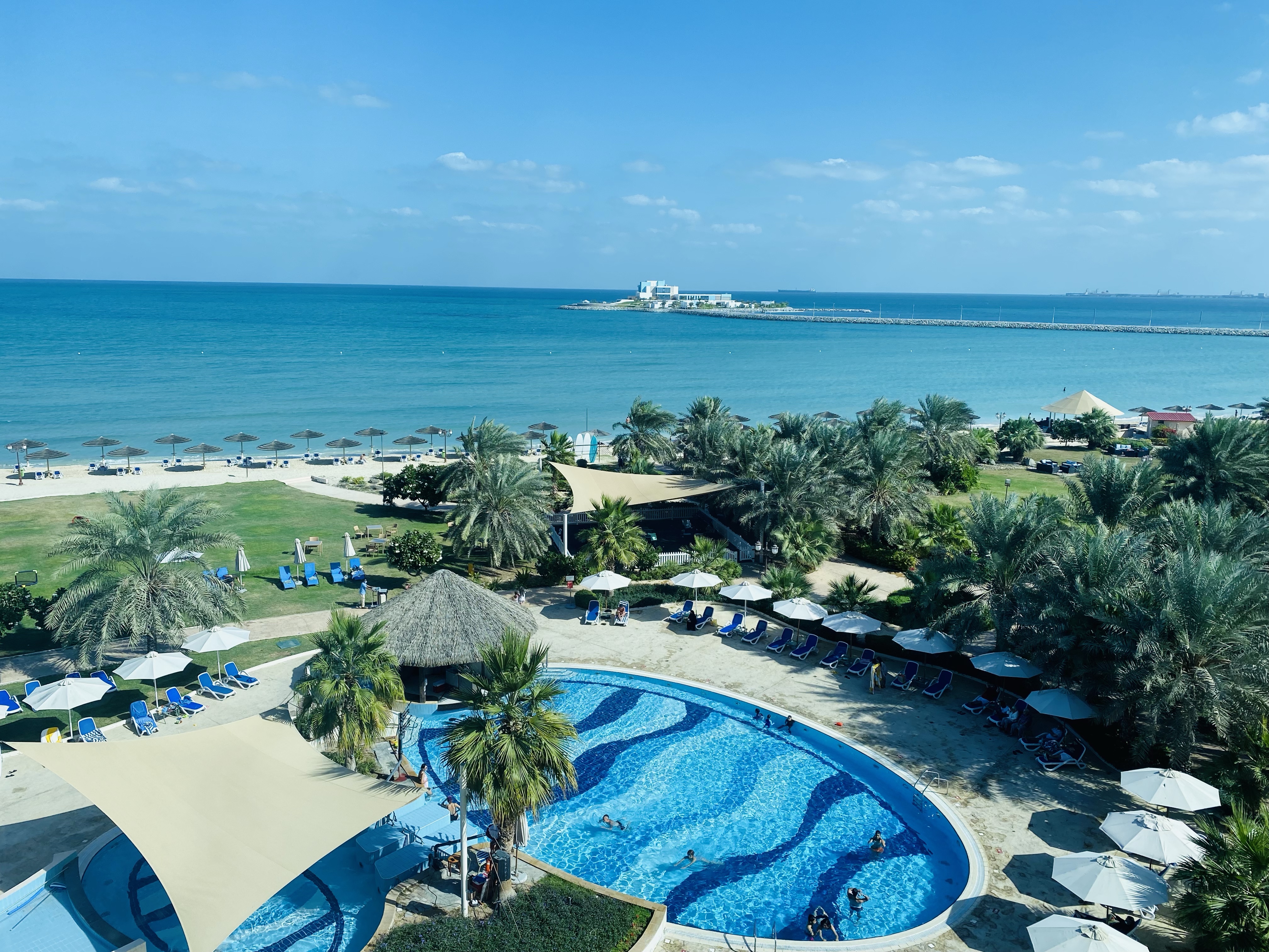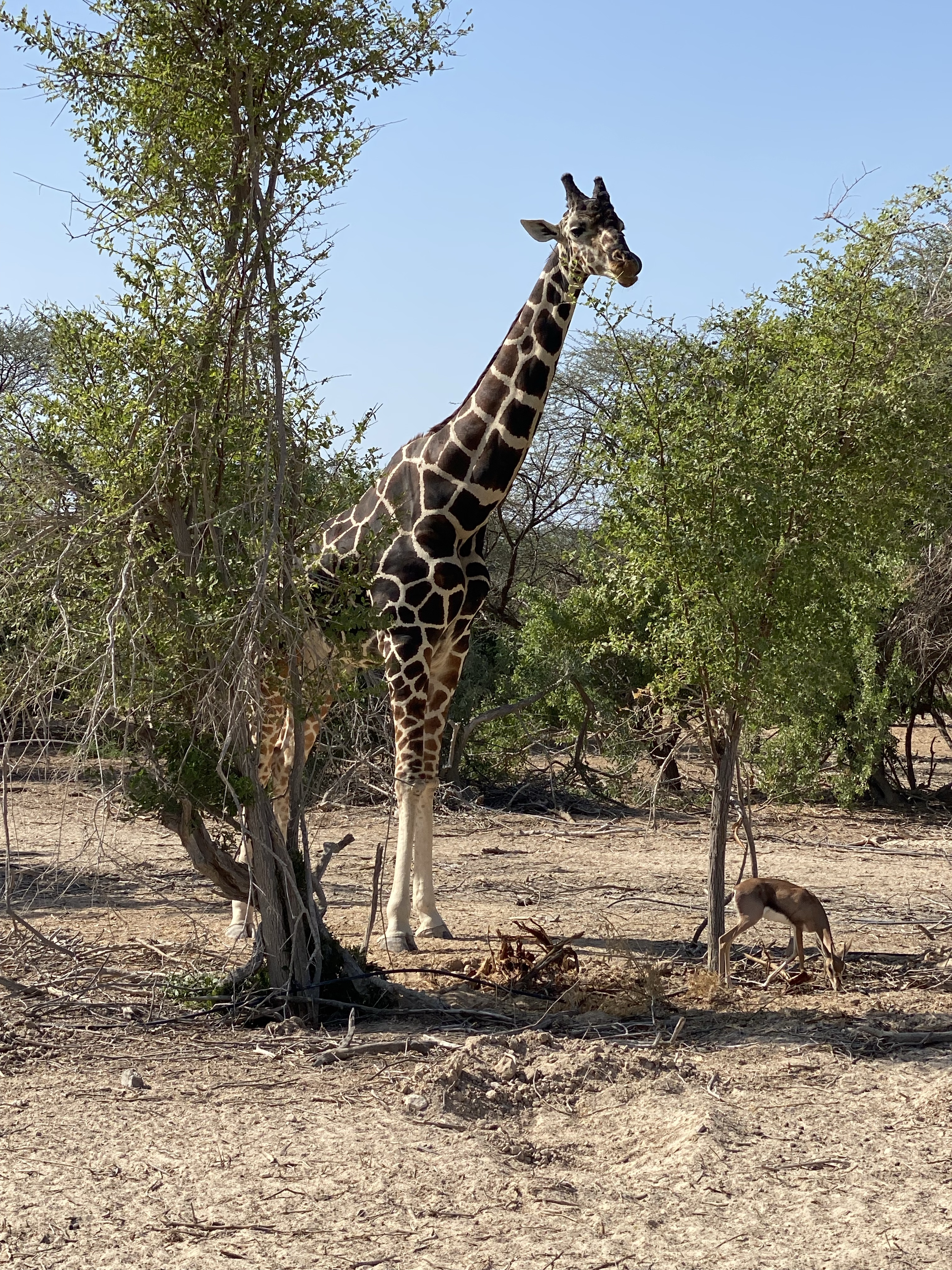 Staycations- We had a four day weekend for National Day and decided to head out of town away from the crowds to a resort on the coast towards Saudi Arabia. Other than lots of time relaxing on the beach, we enjoyed a day trip to Sir Bani Yas Island. Sir Bani Yas was a private island retreat for HH Sheik Zayed, one of the founders and first president of the UAE, who transformed the island- planting millions of trees and providing refuge for animals. The island was closed to the public during Covid as the royal family spent their lockdown days on the island at the palace. We had a private jeep drive us around and were able to see lots of wildlife including many Arabian Oryx, gazelles, this giraffe and two cheetahs.