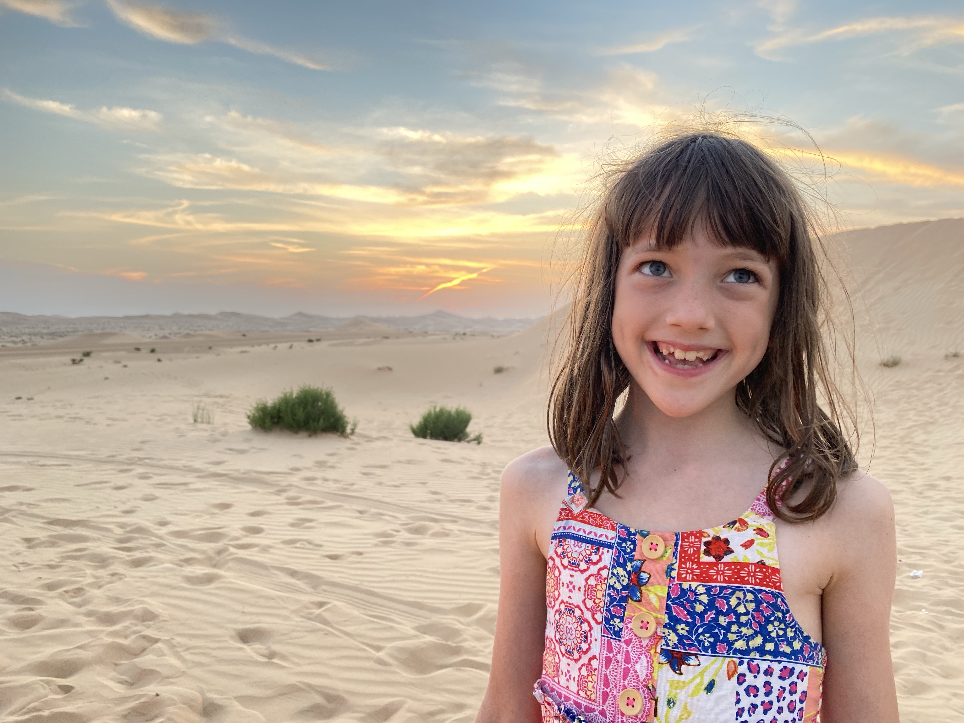 Food- Below you can see Mila being a risk-taker and trying camel milk. It hasn’t become part of our regular diet, but she gave it a thumbs up. Emirati food includes some familiar dishes like shawarmas, falafel, manakish, flatbreads, and fattoush salad. For National Day, we were able to sample Luqaimat (small donut balls in date syrup) and Arabic coffee with cardamom, cumin, cloves, and saffron. The UAE is incredibly diverse, with almost 90% of the population being expats. The culinary variety matches the diversity of the population. We have had lots of amazing Indian food along with tasty Thai, Vietnamese, Japanese, Chinese, Korean, Pakistani, Philipino, Yemeni, Syrian, and Mexican.